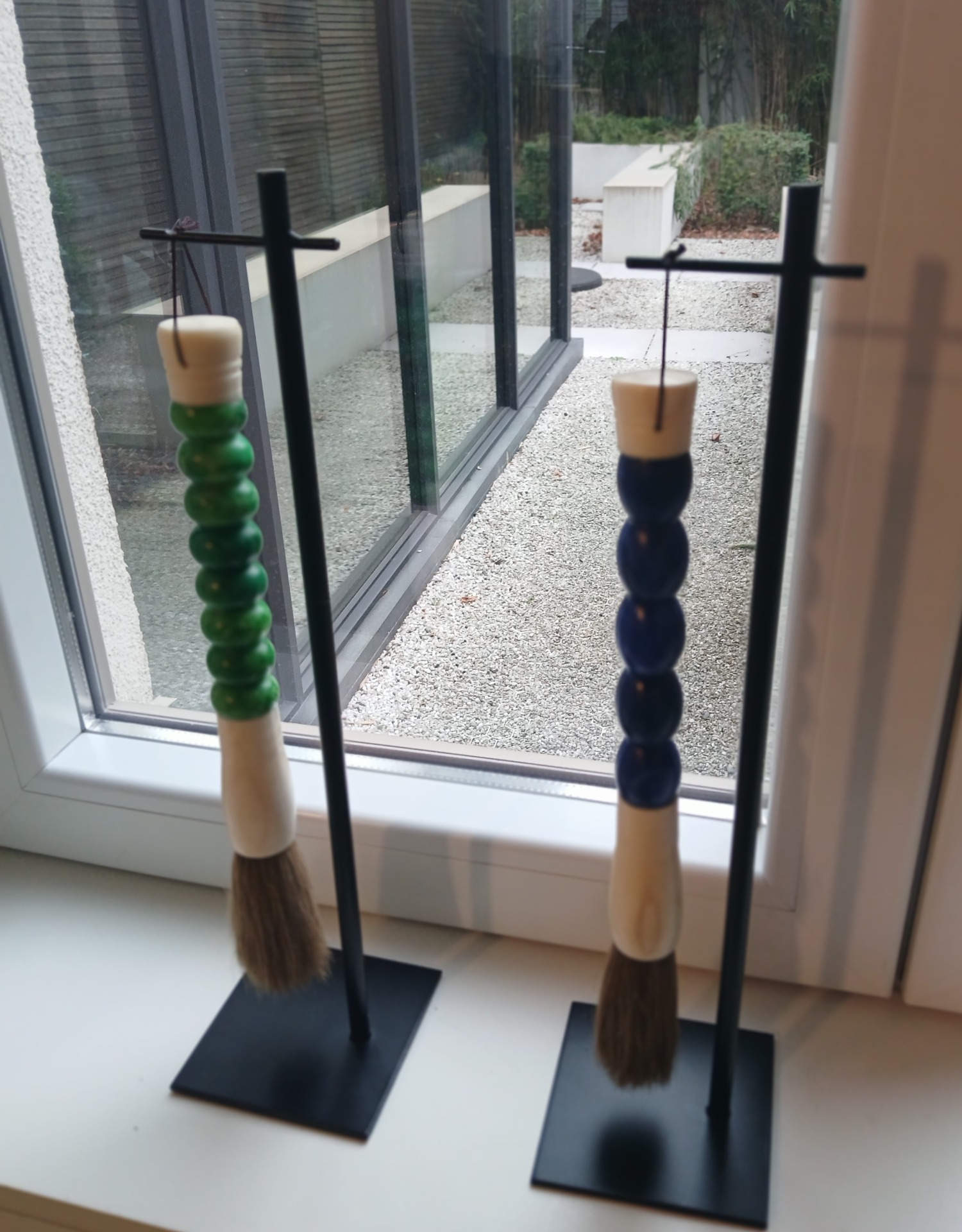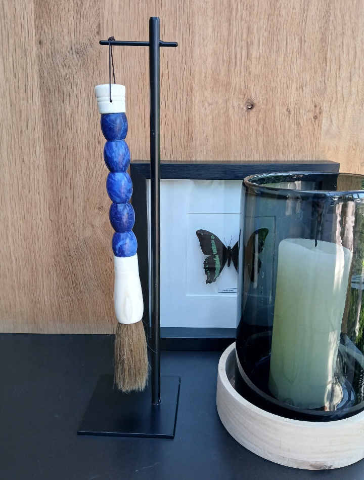 Deze penselen worden gepresenteerd als decoratieve objecten om neer te leggen op een dressoir, in een schaal of om aan een haak te hangen als kunstobject. De borstel bestaat uit paarden- & geitenhaar , de schacht bestaat uit natuurlijk been en hoorn. B32 X H3 x D3 cm. Ook in groene kleur beschikbaar.