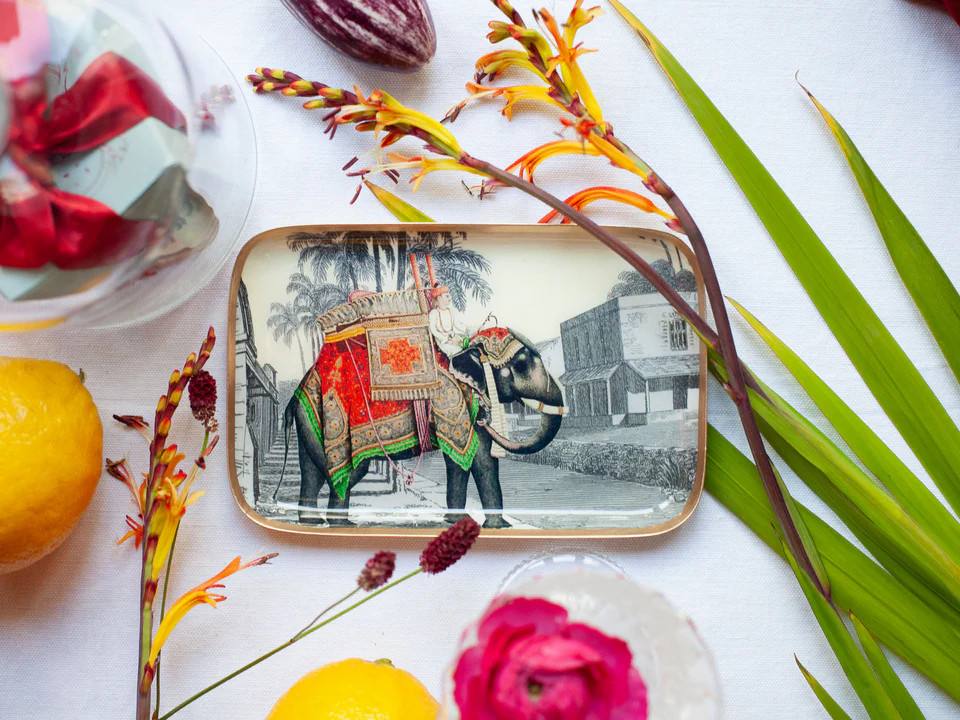 Rechthoekig dienblad 20 x 27 cm voor te serveren of decoreren. 100% geëmailleerd aluminium, handgemaakt. (Niet voor voedselgebruik, niet vaatwasmachinebestendig, niet in de magnetron, niet in de oven). Paradisio imaginarum.
