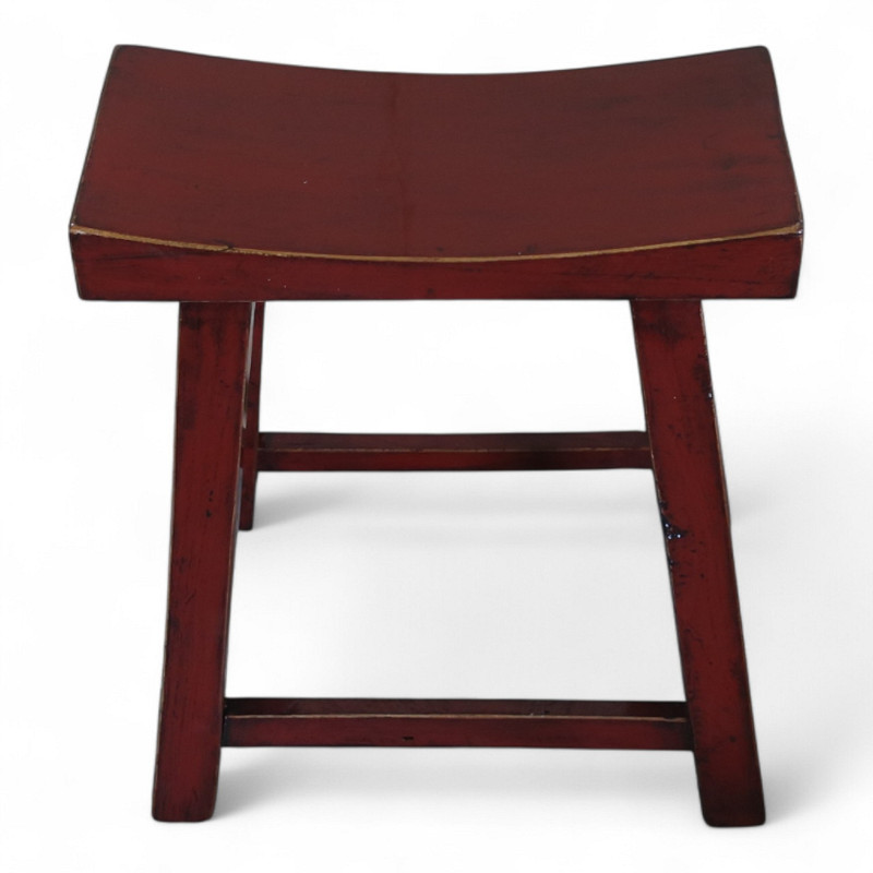Rode kruk uit gerecycleerd hout, H52 x B50 x D25, met zorg en vakmanschap gemaakt door ambachtslieden uit het Verre Oosten, die eer betonen aan traditionele technieken