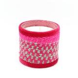 Deze kaarsen zijn bedekt met stukjes stof, handgeweven door Peruaanse vrouwen. Elke kaars is uniek en weerspiegelt vakmanschap uit de Andes met heldere en levendige kleuren, Bahia Mala. 12 x 12, 3 lonten, 90 branduren. Ceder, amber en eucalyptus.