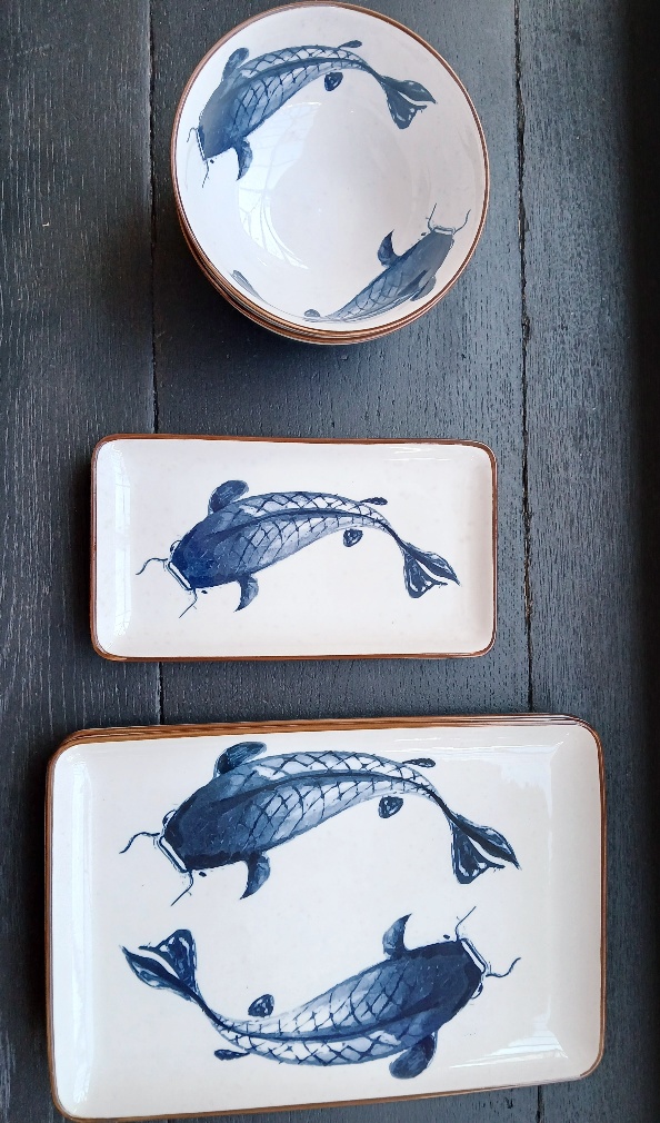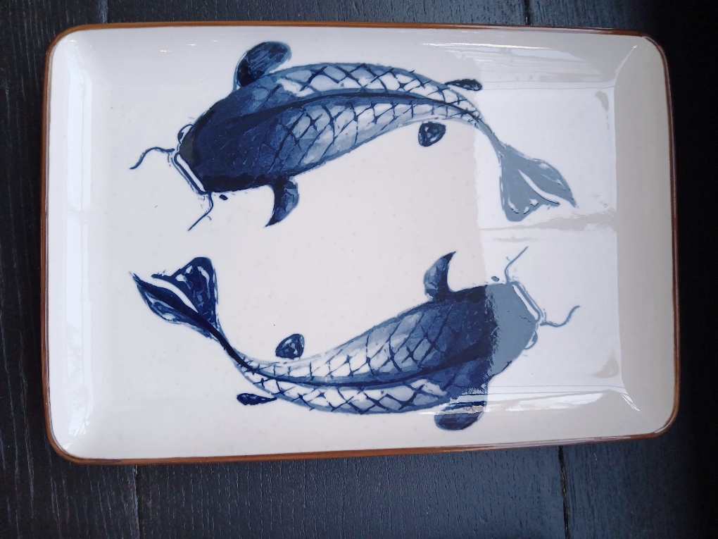 Gezellig tafelen & koken met deze blauwe koi borden.