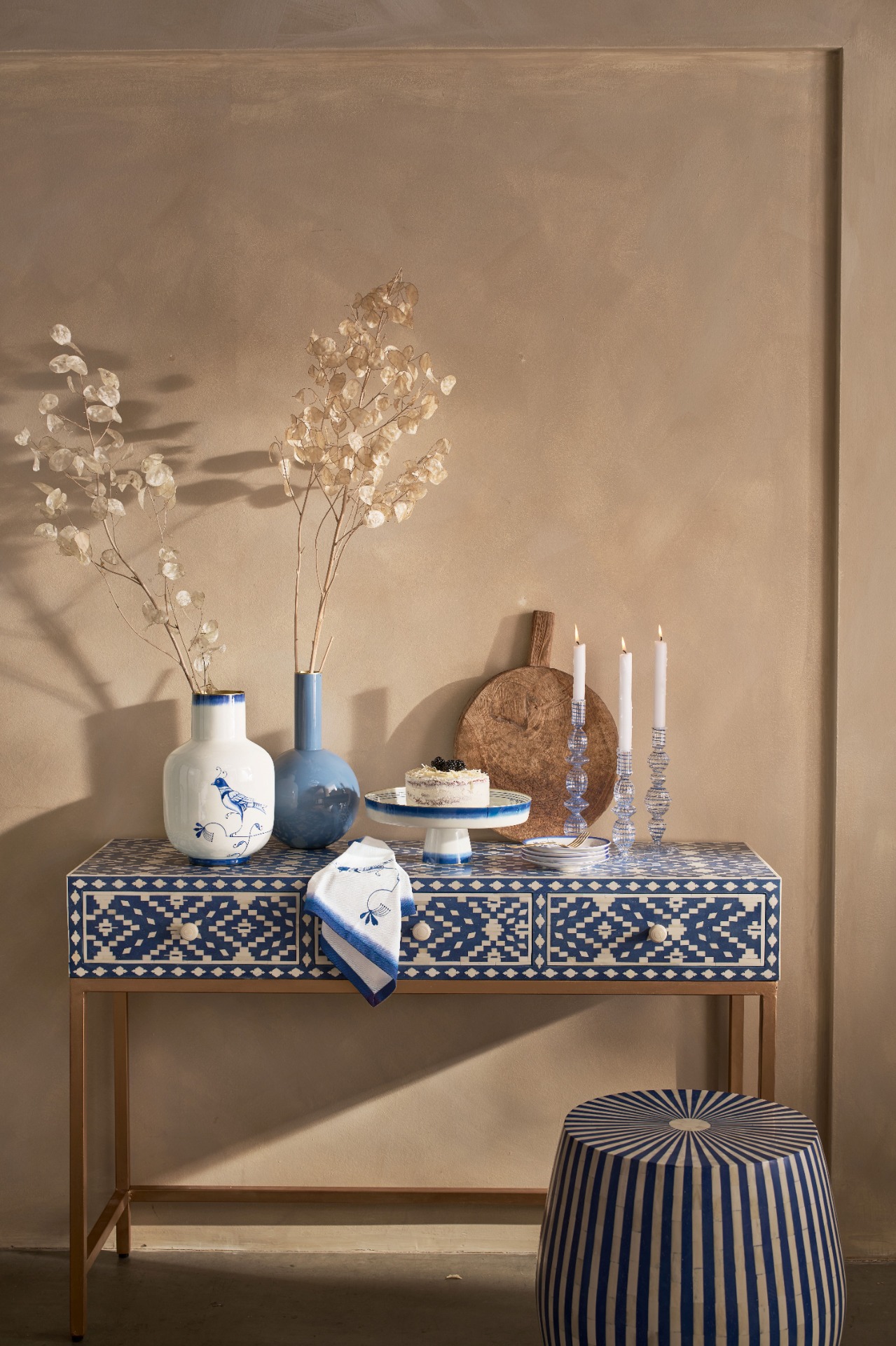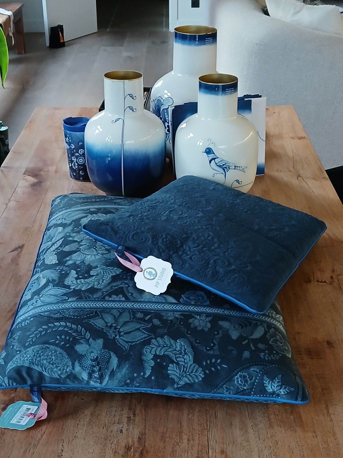 Luxe metalen bloemenvaas -handgeschilderd- Pip Studio -Blue Bird Design