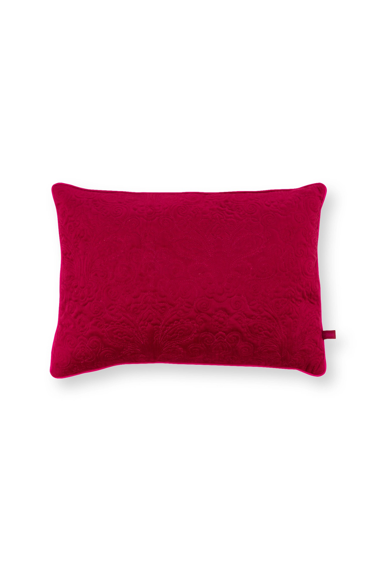 Kussen rood L50 x B35, materiaal polyester, fluweel en katoen.