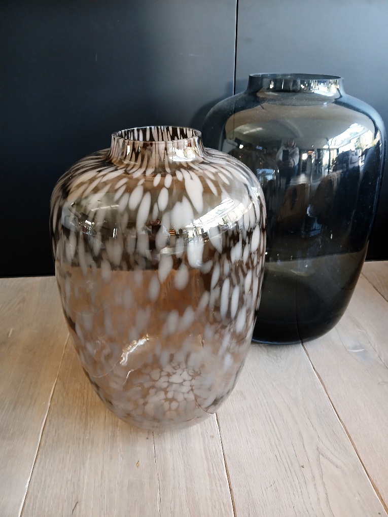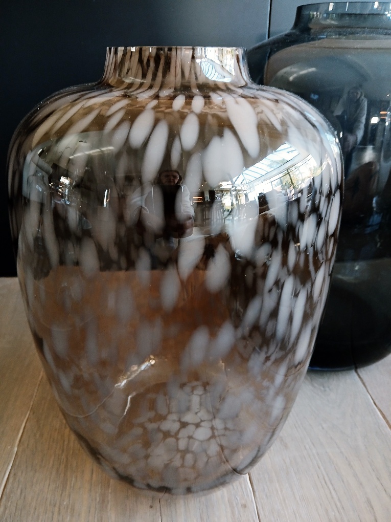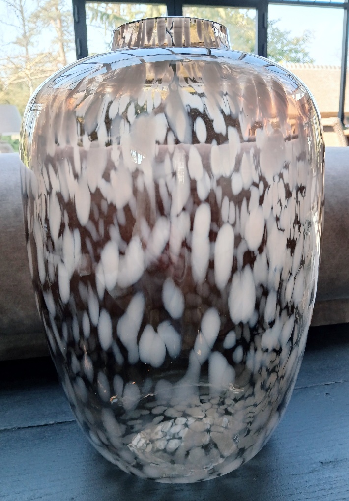 Originele vaas beige met witte vlekken, kan klassiek als modern, Eglo deco.